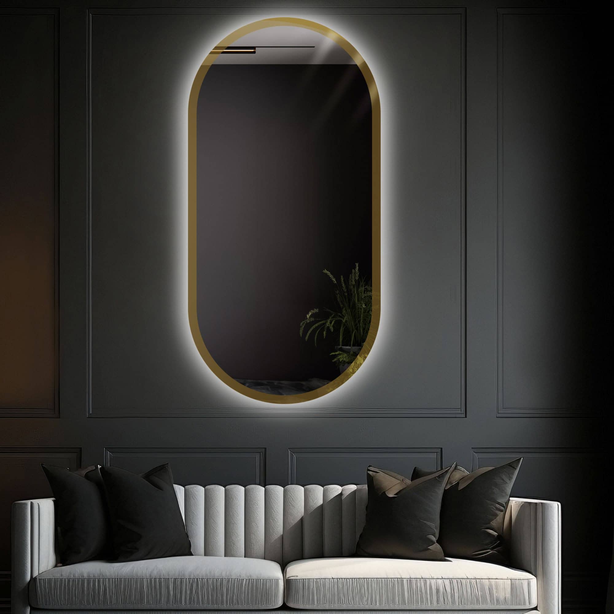 Ovaler Spiegel im Rahmen mit goldener Glanz und Beleuchtung - BONITA LED