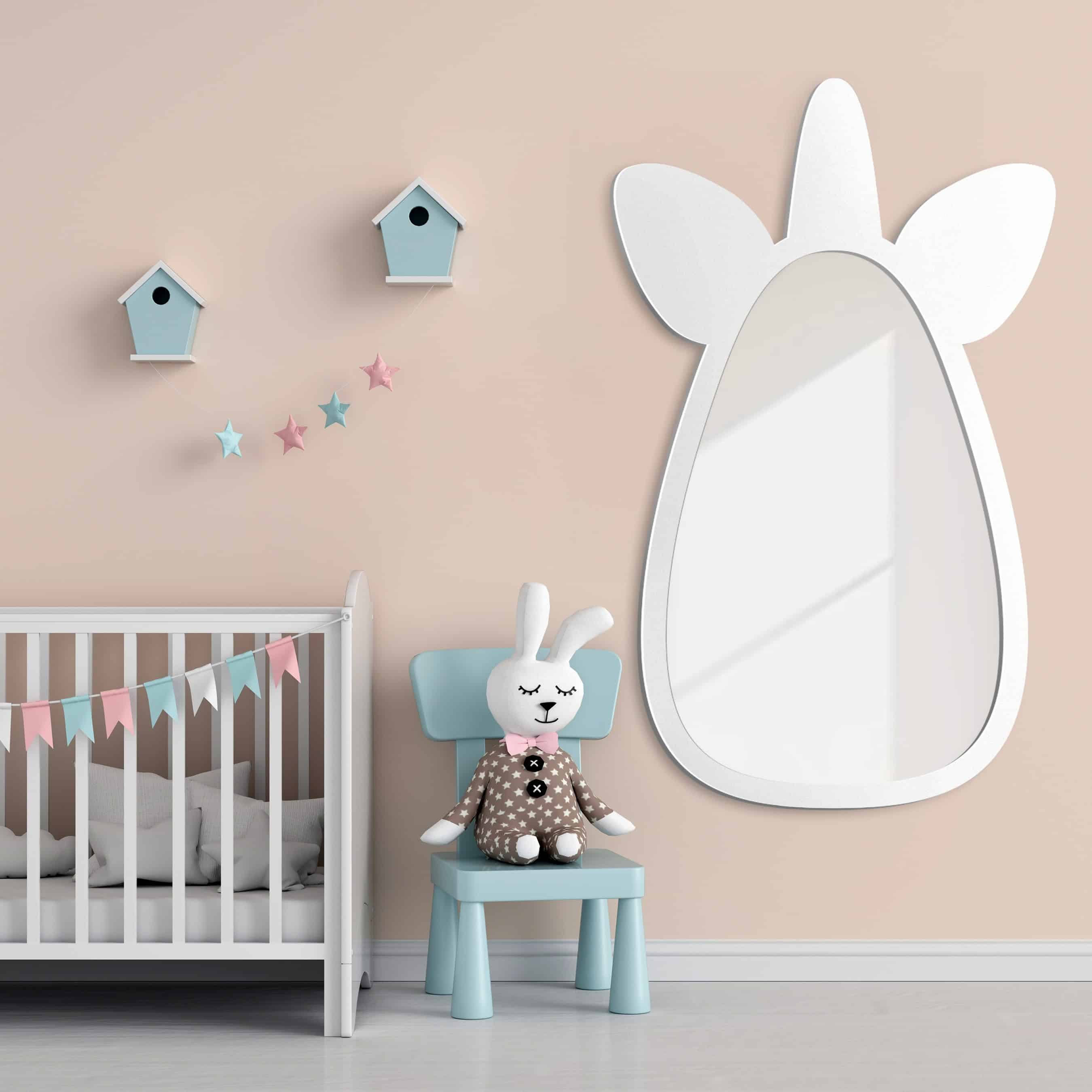 Darüber hinaus sind diese Spiegel oft sehr niedlich. Die Rahmen haben häufig die Form von Tieren oder Märchenfiguren, was Kinder noch mehr dazu motiviert, ihr Spiegelbild zu entdecken, Gesichtsausdrücke zu üben und spielerisch ihre Selbstwahrnehmung zu entwickeln. Schließlich beginnt die Entwicklung eines Kindes mit dem Spiel – daher sollte der Raum die richtigen Voraussetzungen dafür bieten.