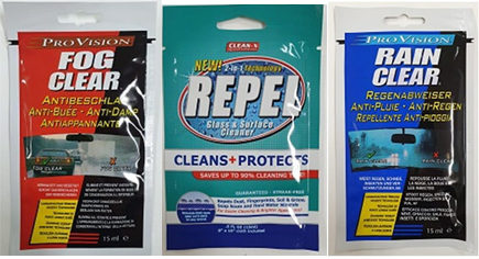 • Rain Clear Beutel mit einem getränkten Tuch - Ein Imprägniermittel, das die Wirkung eines unsichtbaren Wischers und eines hervorragenden Imprägniermittels für Glasoberflächen verbindet. Es schützt vor der Bildung von Wasserdampf auf Glas, Spiegeltafeln und Spiegeln.