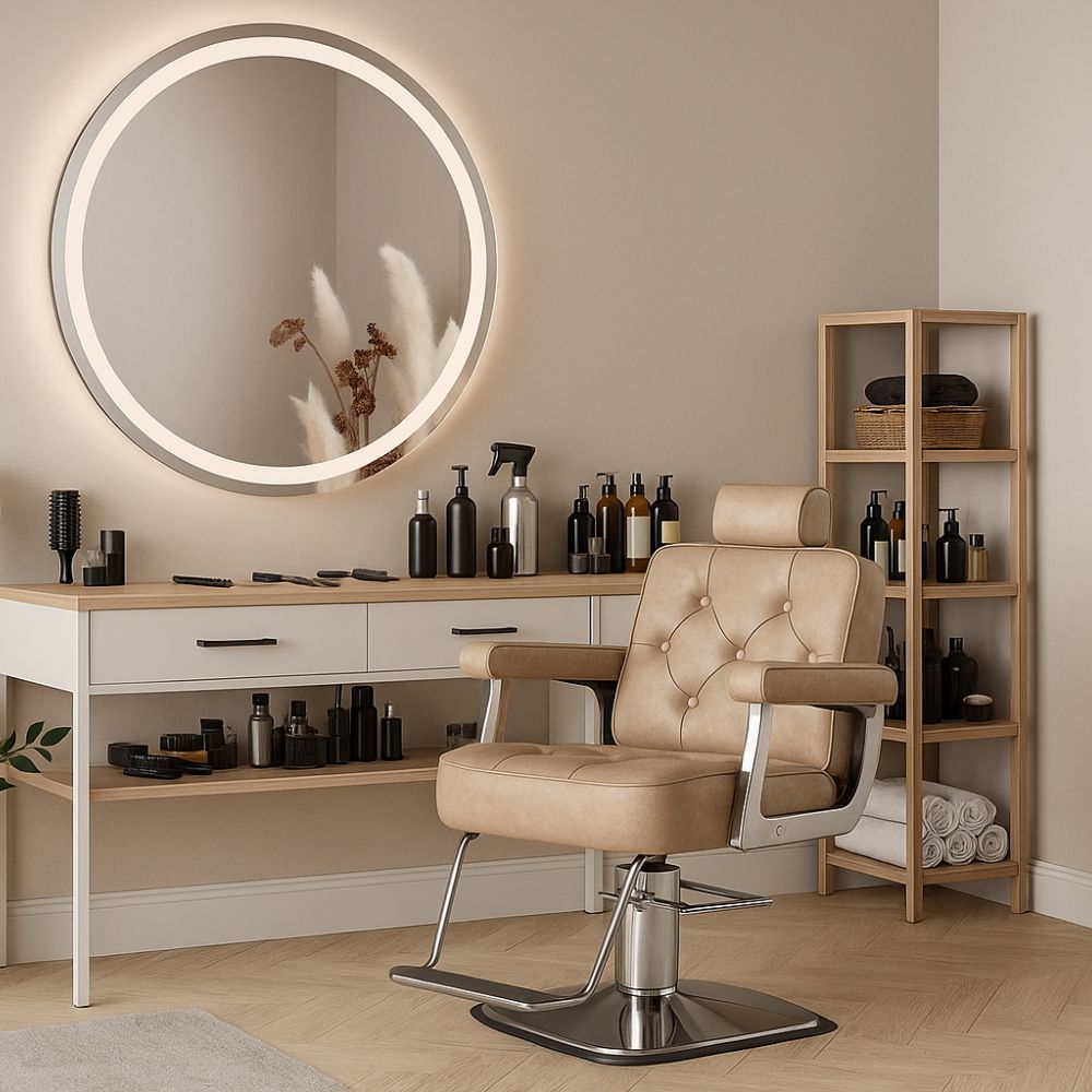 Auch wenn dein Salon große Fenster hat, kann natürliches Licht – besonders im Winter oder an bewölkten Tagen – unzureichend sein. Deshalb ist ein Spiegel mit integrierter Beleuchtung ein Muss, kein Luxus. - Wähle einen Spiegel mit gleichmäßig verteilten Lichtquellen