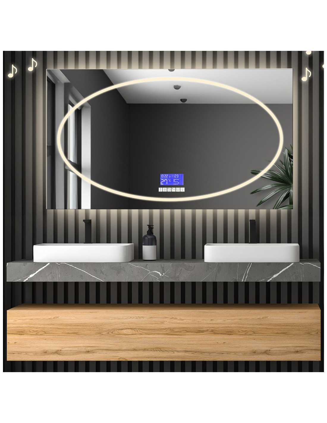 Touchpanel mit Radio und Bluetooth – Diese Lösung ist für diejenigen gedacht, die Luxus und technologischen Komfort bevorzugen. Es handelt sich um ein Set aus einem 6-Tasten-Touchpanel für den Spiegel und einem Bluetooth-Lautsprecher. Das Touchpanel steuert eine Reihe von Funktionen wie Beleuchtung, Dimmen, Heizmattensteuerung, Radio und Musikwiedergabe über Bluetooth. Darüber hinaus zeigt es laufend Datum, Uhrzeit und Temperatur an und verfügt über eine Speicherfunktion für den letzten Status vor dem Ausschalten.