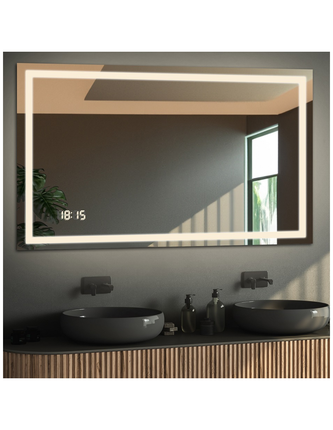 Rechteckiger Badezimmerspiegel mit Digitaluhr und Temperatursensor - EMI LED PREMIUM