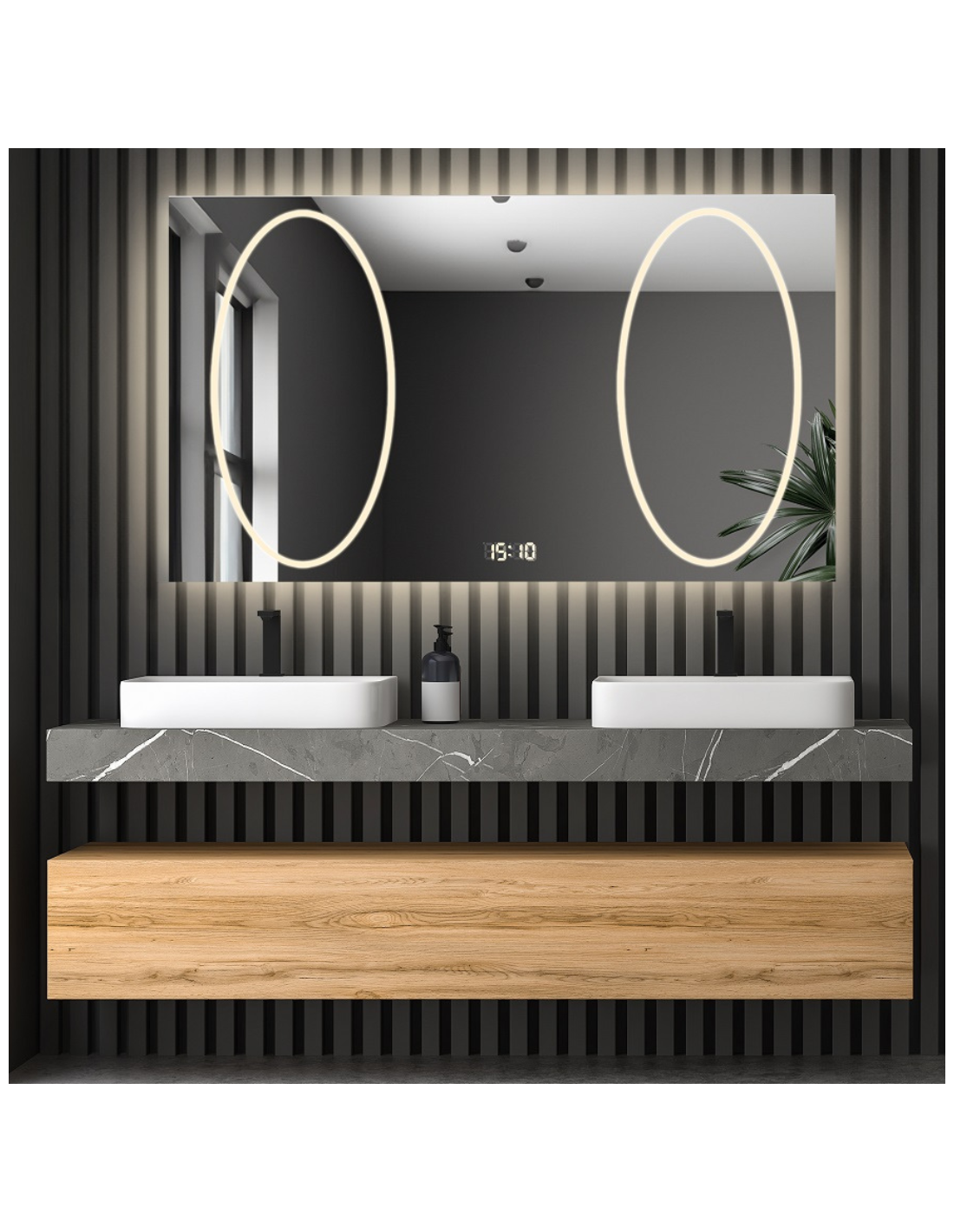 Digitaluhr mit Temperatursensor – Ein funktionelles Zubehör für alle, die Wert auf Sorgfalt und Komfort legen. Das Modul zeigt die aktuelle Uhrzeit und die Raumtemperatur an, was besonders bei morgendlichen Routinen nützlich ist. Die Uhr wird unabhängig von der Spiegelbeleuchtung beleuchtet, weswegen die Daten unter allen Bedingungen abgelesen werden können. Der Temperatursensor befindet sich auf der Rückseite des Spiegels und die Temperatur und die Uhrzeit werden auf dem Spiegel abwechselnd angezeigt. Die Uhr benötigt eine zusätzliche permanente Stromversorgung. Größe auf der Spiegeltafel: 5 cm x 1,5 cm. Die Ziffern auf dem Display der Uhr leuchten weiß.