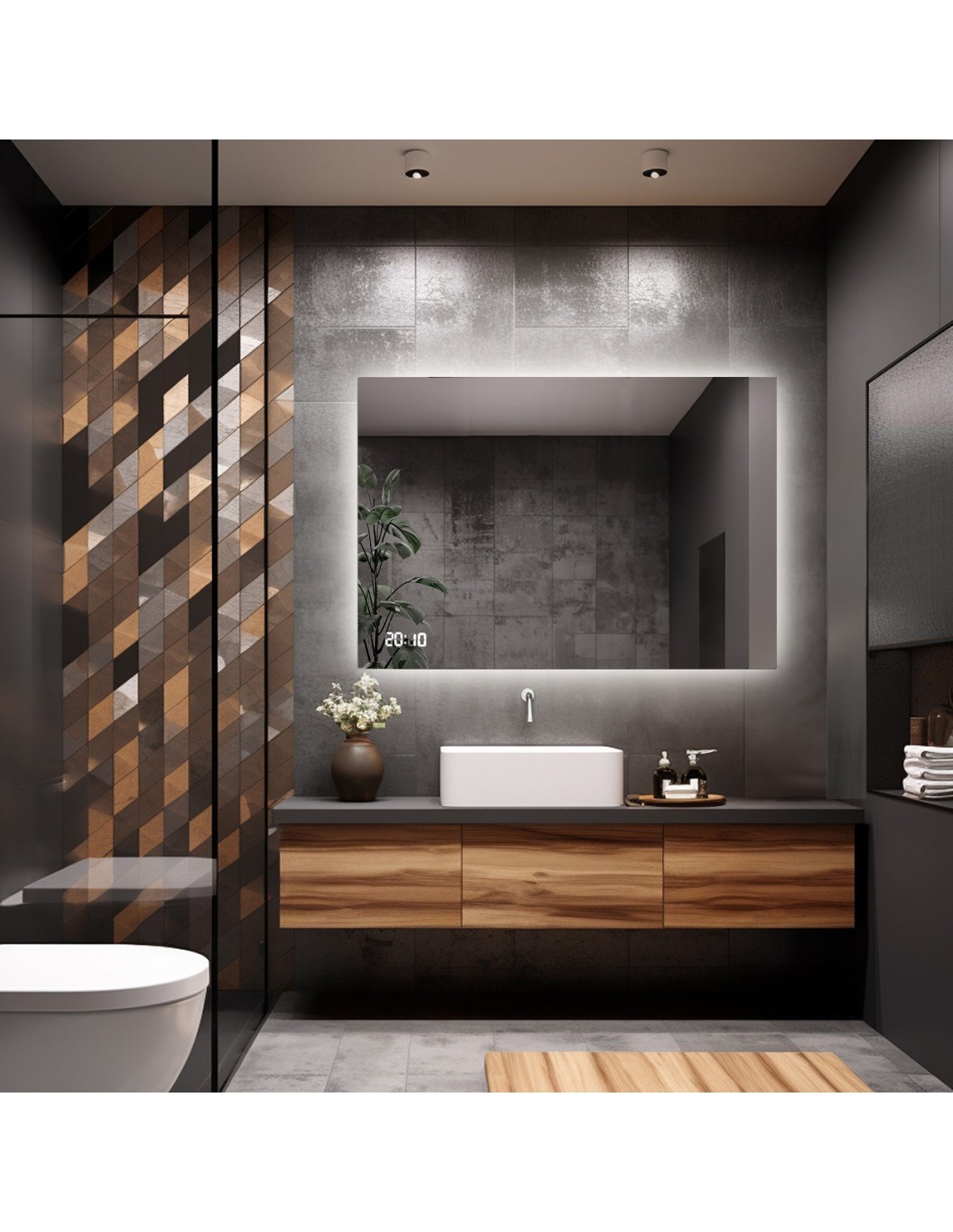 Rechteckiger Badezimmerspiegel mit Digitaluhr und Temperatursensor - AGIS LED PREMIUM