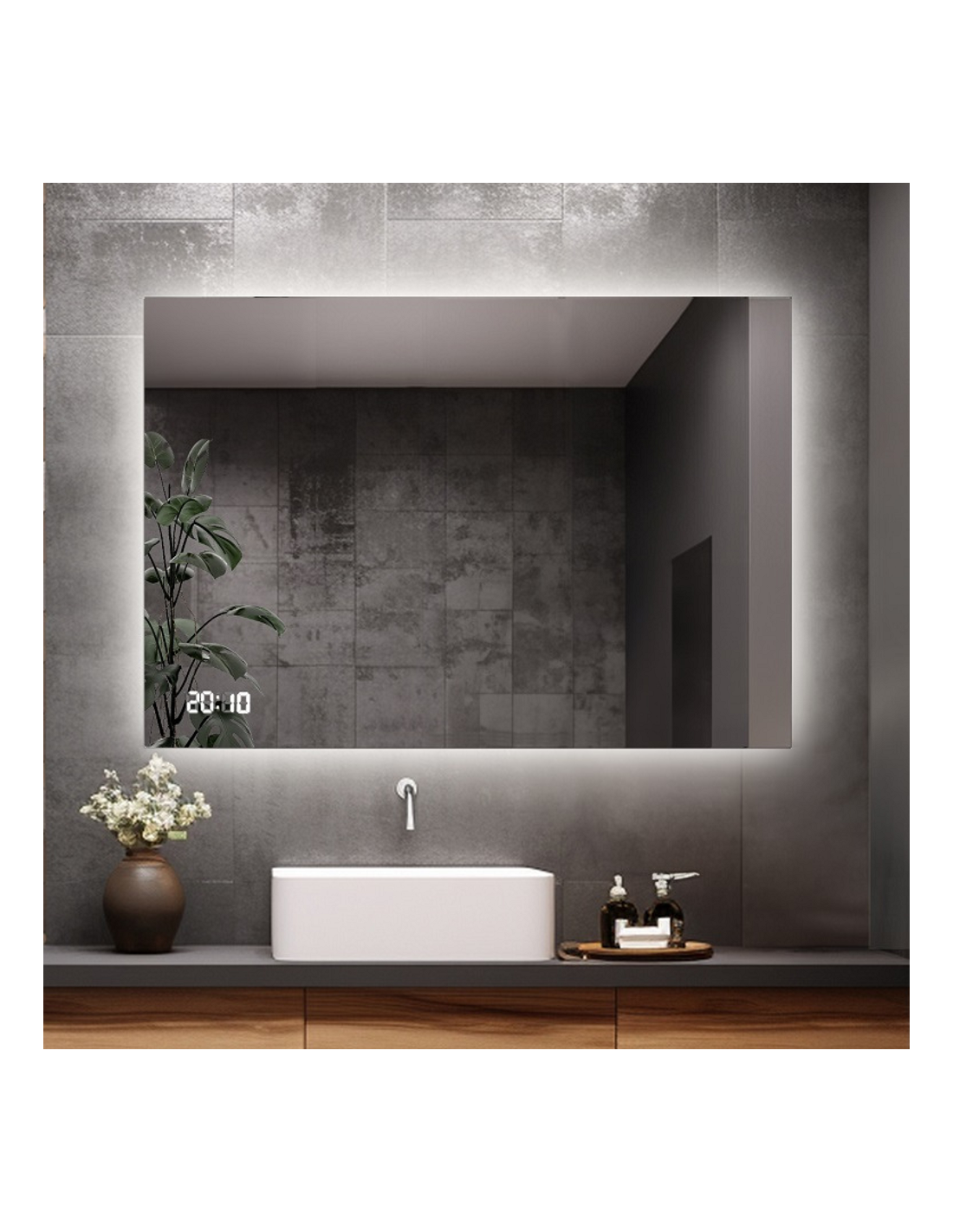 Rechteckiger Badezimmerspiegel mit Digitaluhr...