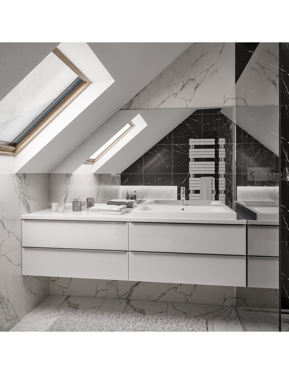 Die Standardbeleuchtung erzeugt einen Lichthof rund um den Spiegel. Bei Auswahl der LED-Verkleidung ist das Licht in einer speziellen Verkleidung integriert, was bedeutet, dass kein Lichthof um die Spiegelfläche entsteht. Bei der Auswahl der Beleuchtung für das tägliche Make-up ist die Wahl eines Zusatzes aus dieser Kategorie nicht möglich.