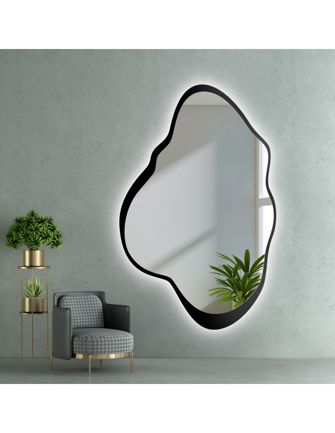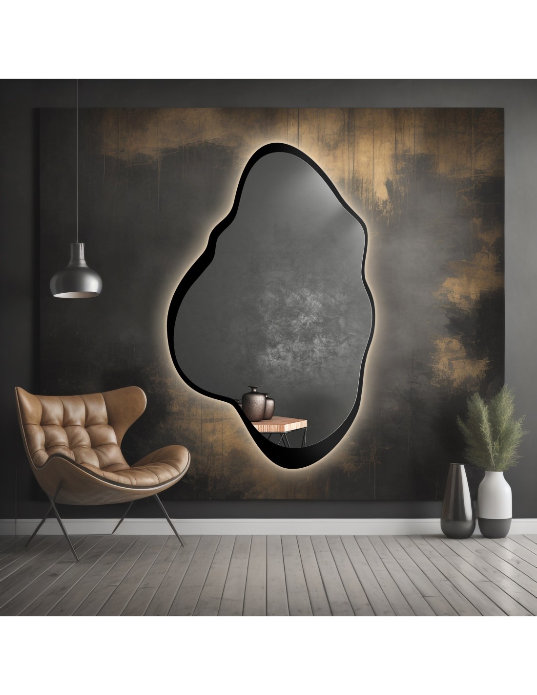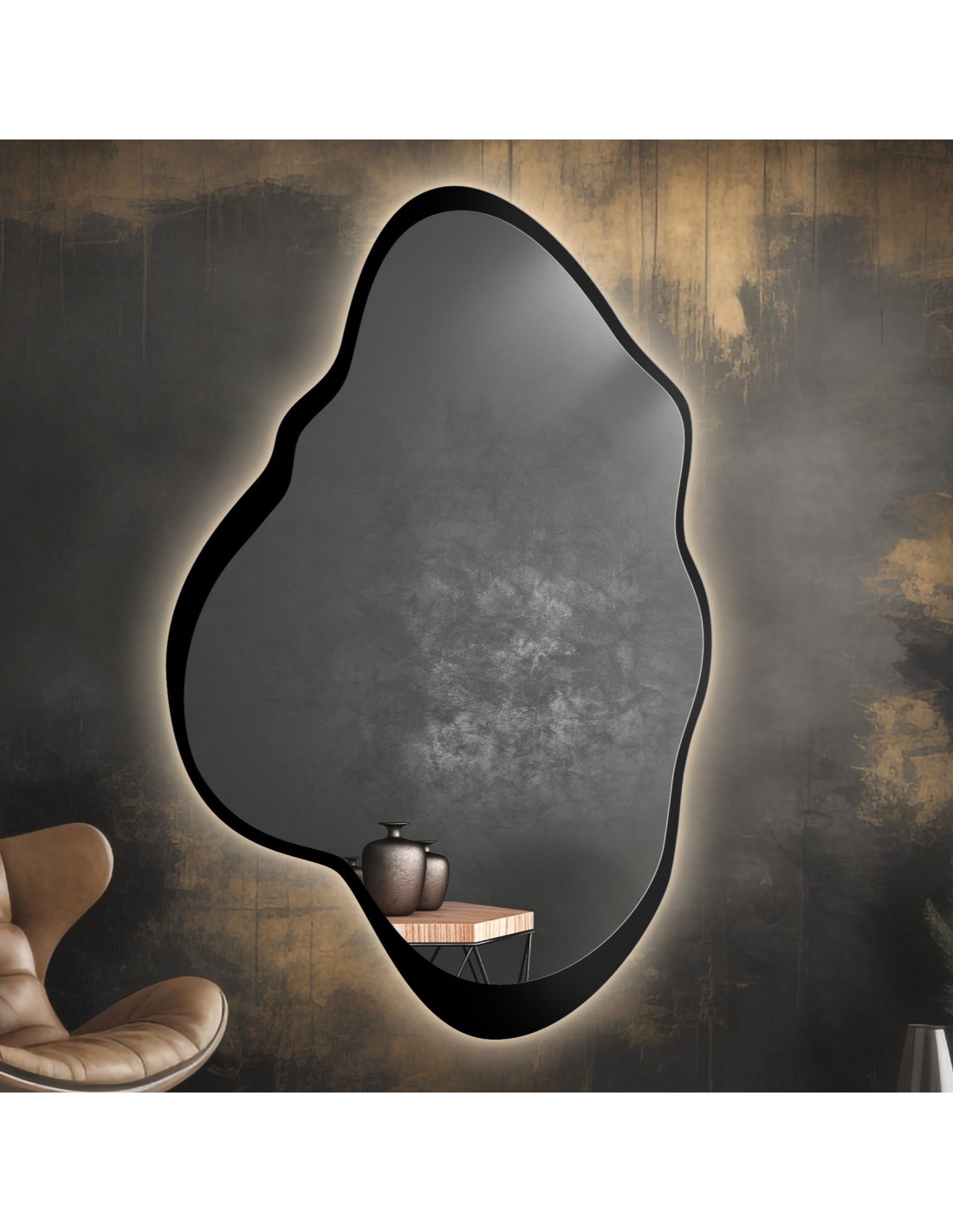 Spiegel in unregelmäßiger Form mit MDF-Rahmen und Beleuchtung - POCO IM LED-RAHMEN