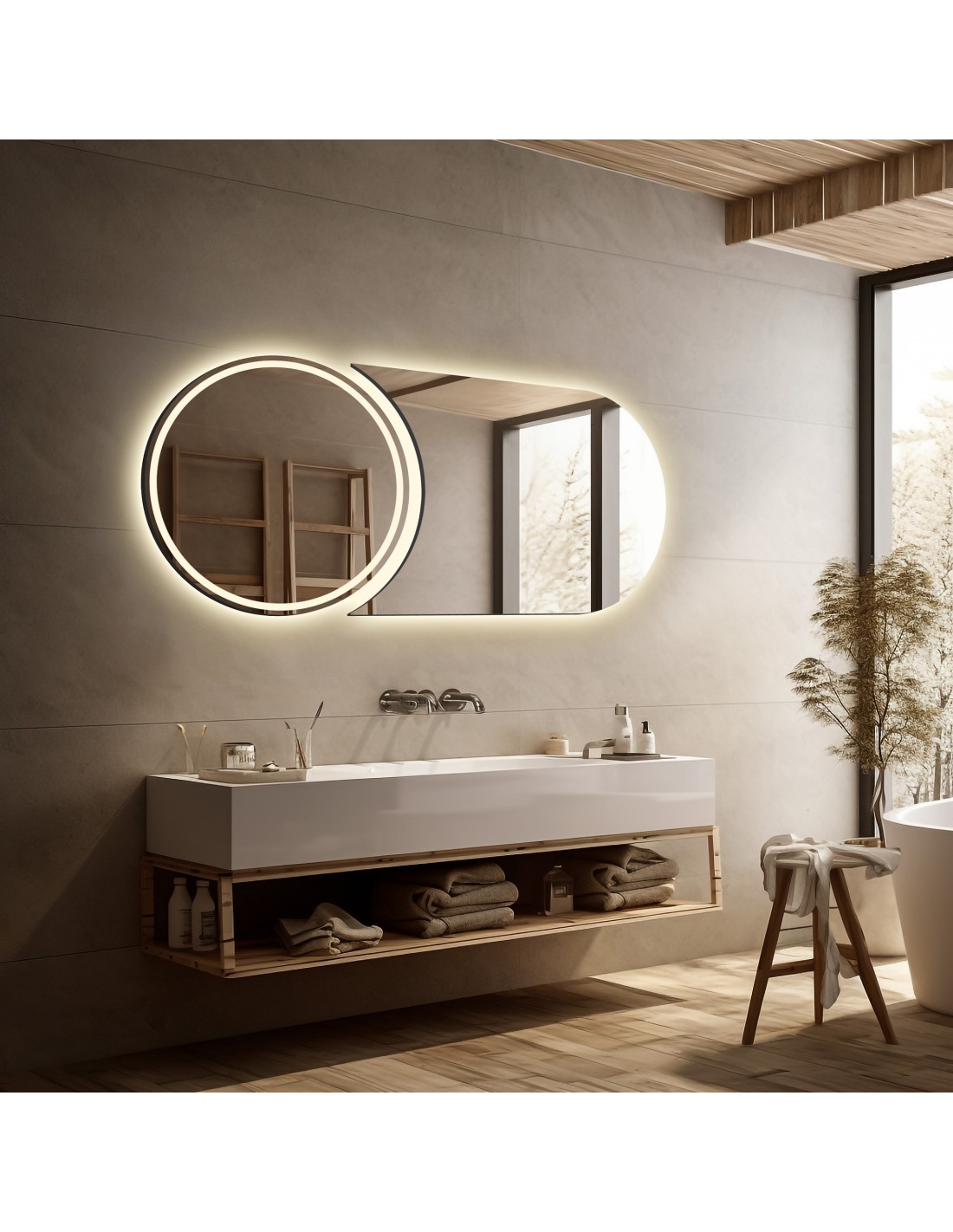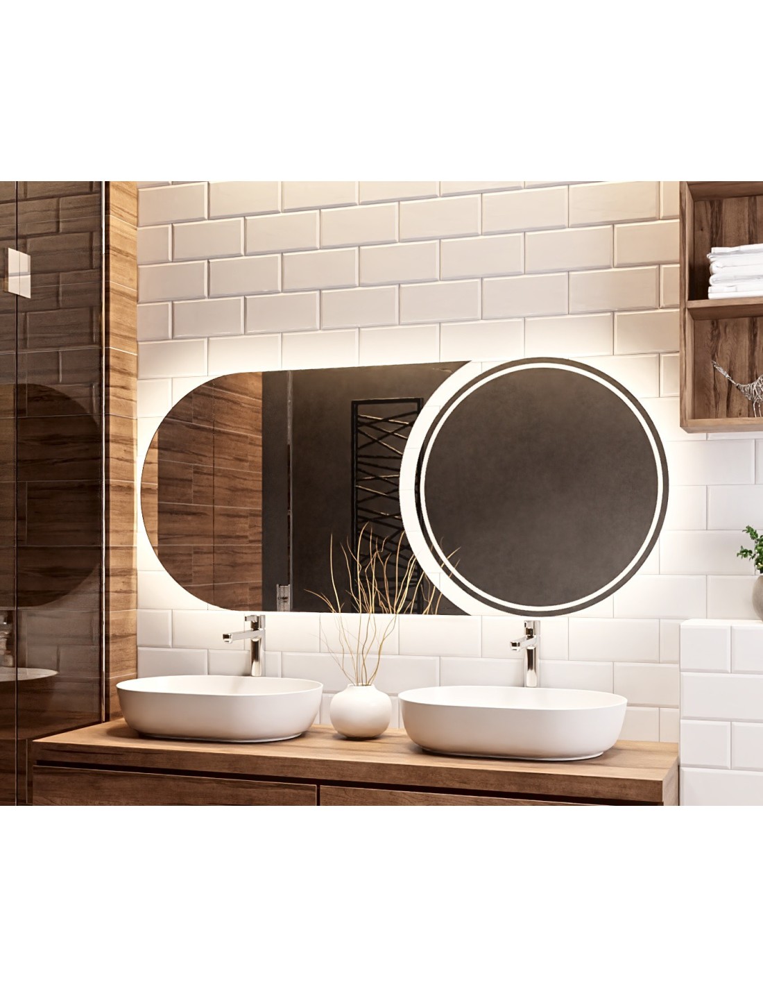 Dieses Set besteht aus zwei separaten Spiegeln mit je geschliffenen Rändern – einem Rundspiegel und einem Spiegel „Komet”. Standardabmessungen des Spiegels: 50 x 150
