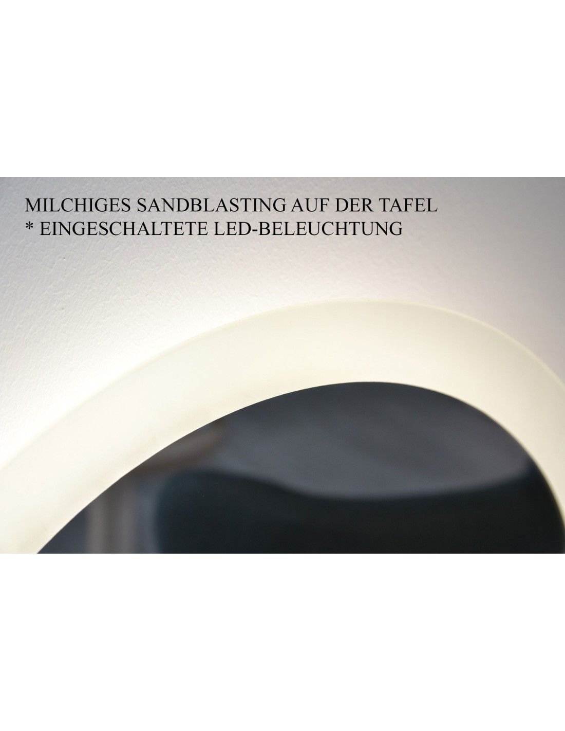 Der Spiegel hat einen milchig sandgestrahlten LED-Streifen auf der Spiegeloberfläche