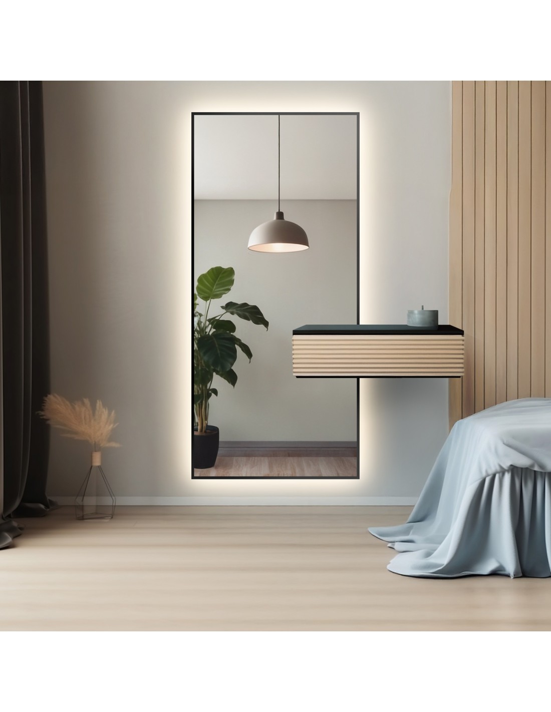 Rundspiegel mit schwarzem Rahmen MDF SLIM mit Hintergrundbeleuchtung - OTYLIA LED -...