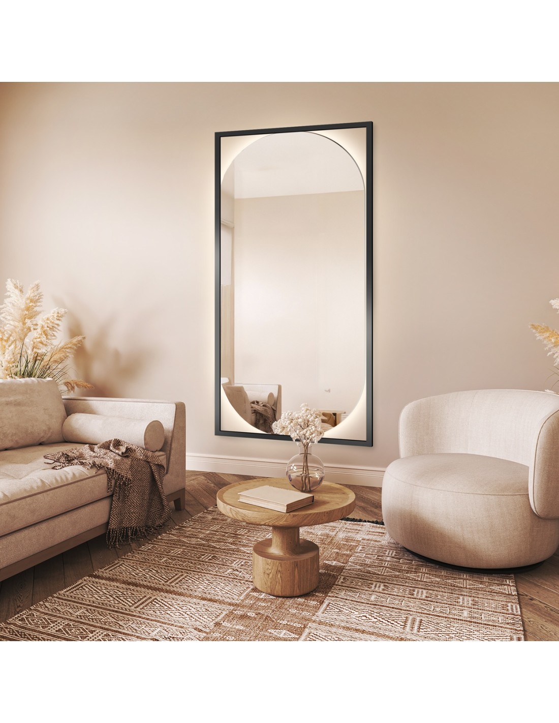 Modernes ovales Spiegel in einem Holzrahmen mit Beleuchtung - RENA LED