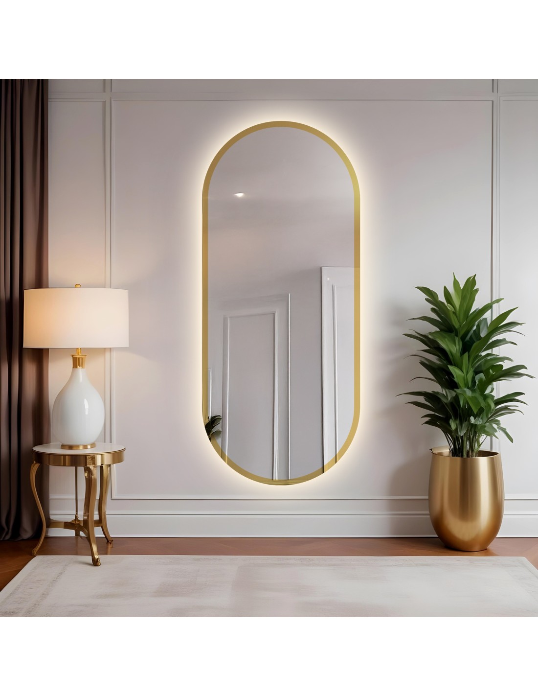 Ovaler Spiegel im Rahmen mit goldener Glanz und Beleuchtung - BONITA LED