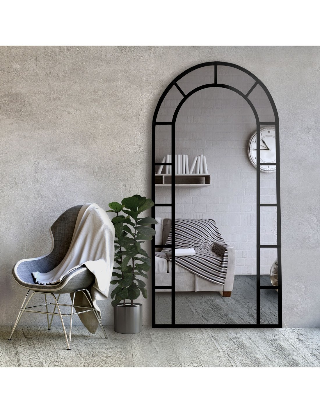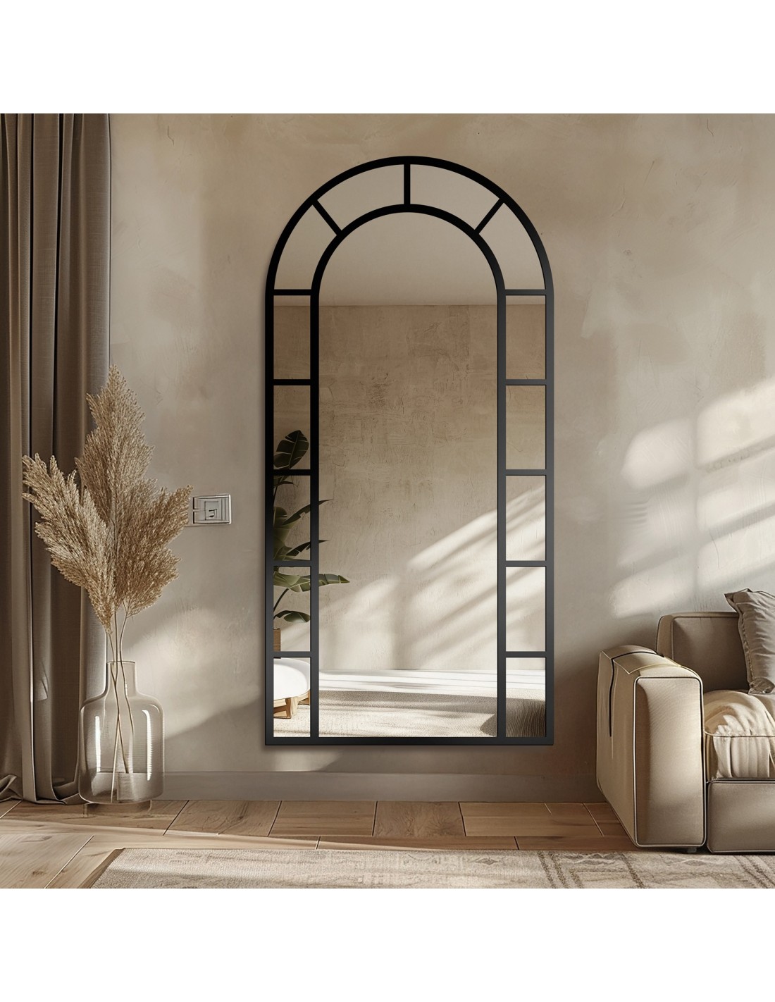 Bogenspiegel mit Sprossenleisten Rahmen in Loftoptik MDF - FENSTER III - Rahmenfarbe nach Wahl