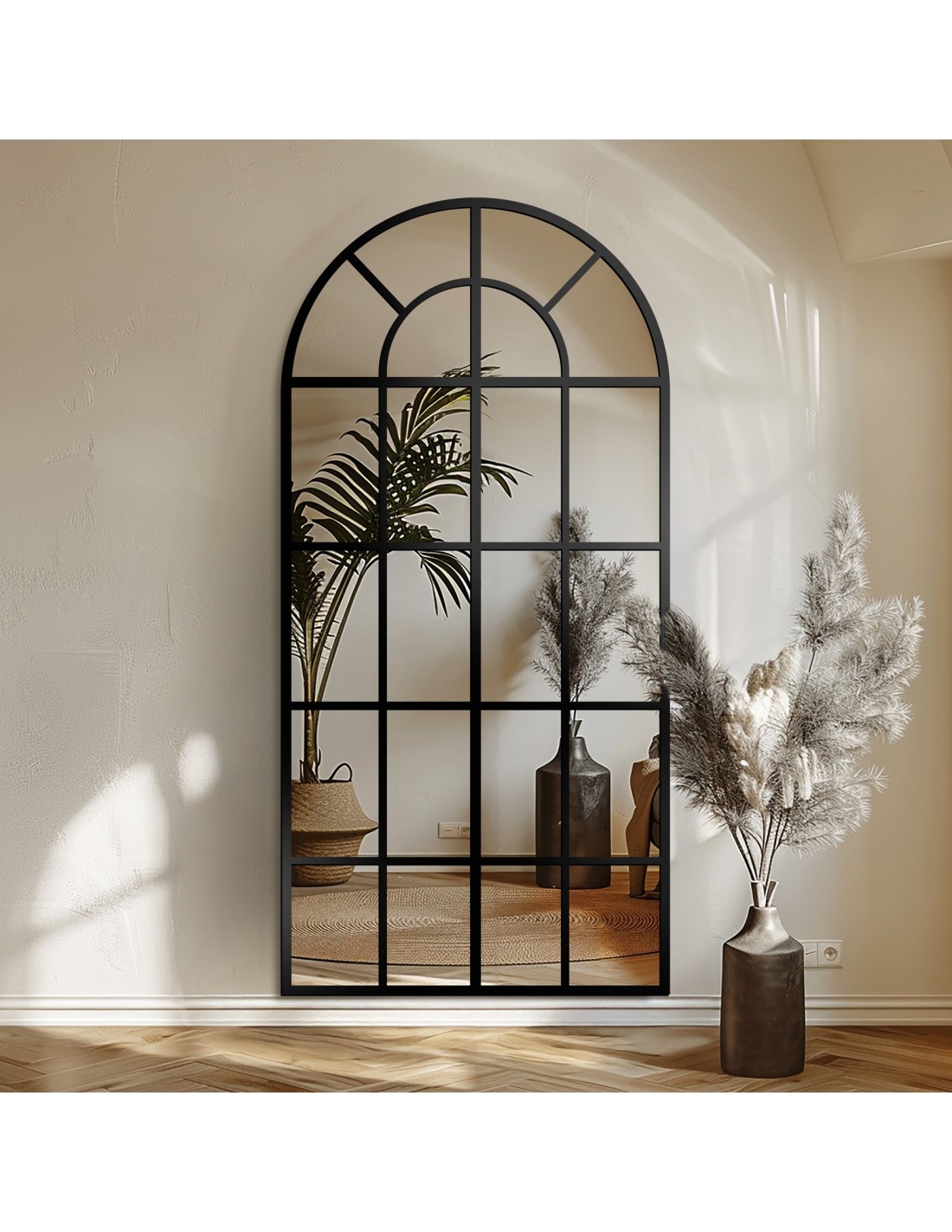 Bogenspiegel mit Sprossenleisten Rahmen in Loftoptik MDF - FENSTER I - Rahmenfarbe nach Wahl
