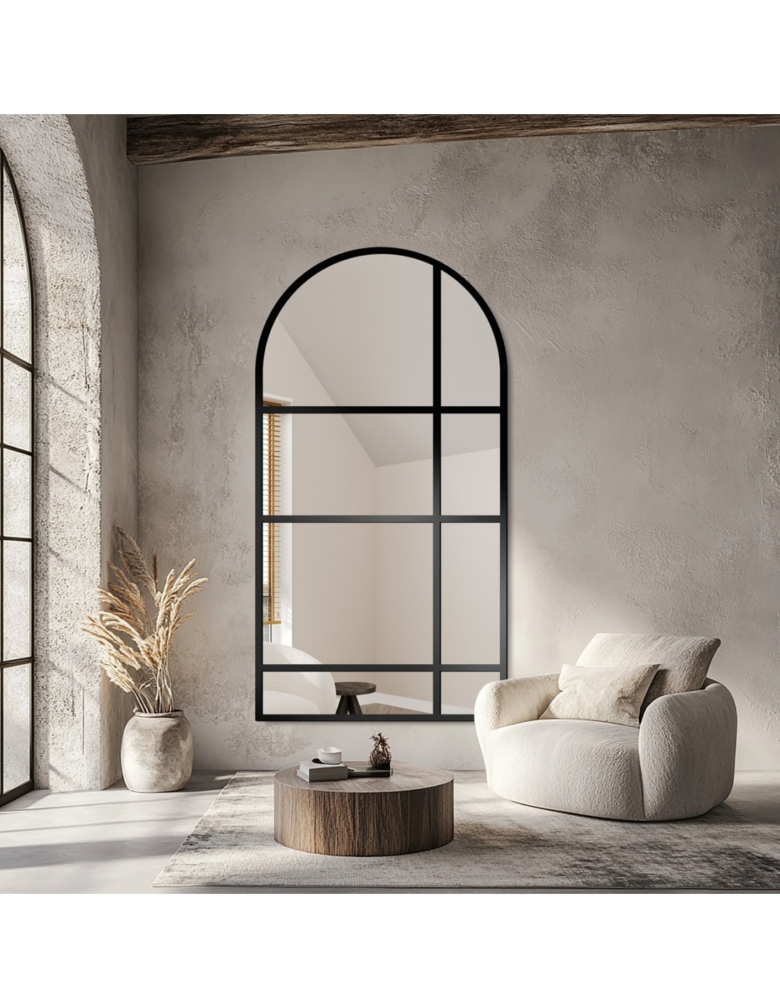 Bogenspiegel mit Sprossenleisten Rahmen in Loftoptik MDF - JORDAN - Rahmenfarbe nach Wahl