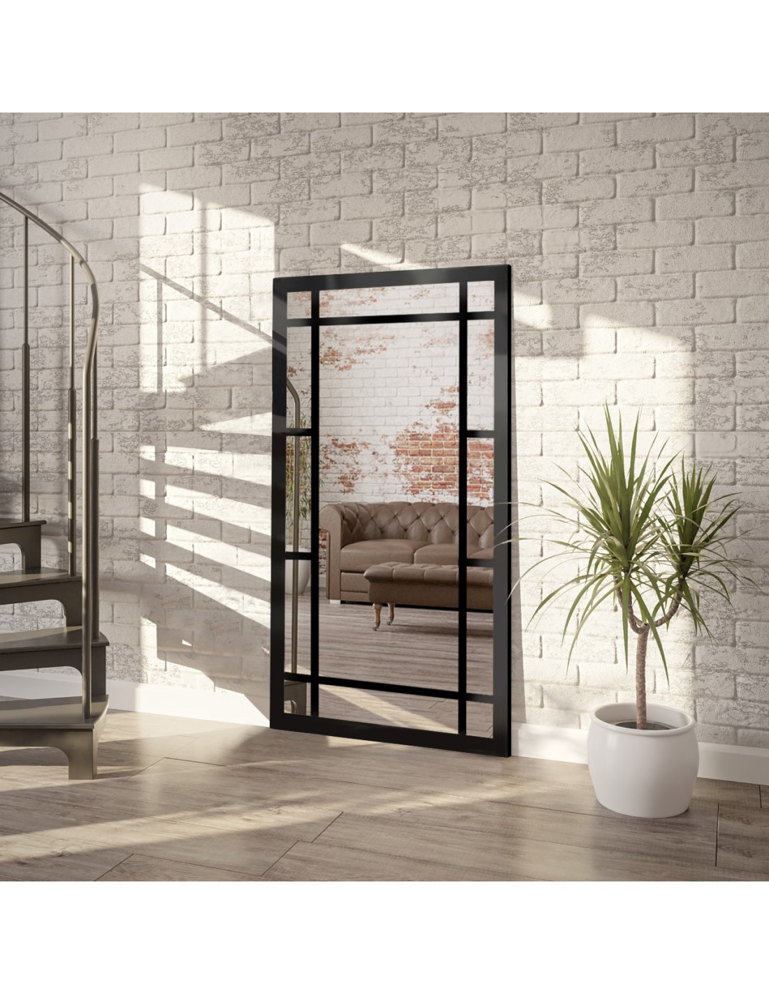 Spiegel in Loftoptik mit Sprossenleisten - LUKAS - Rahmenfarbe nach Wahl