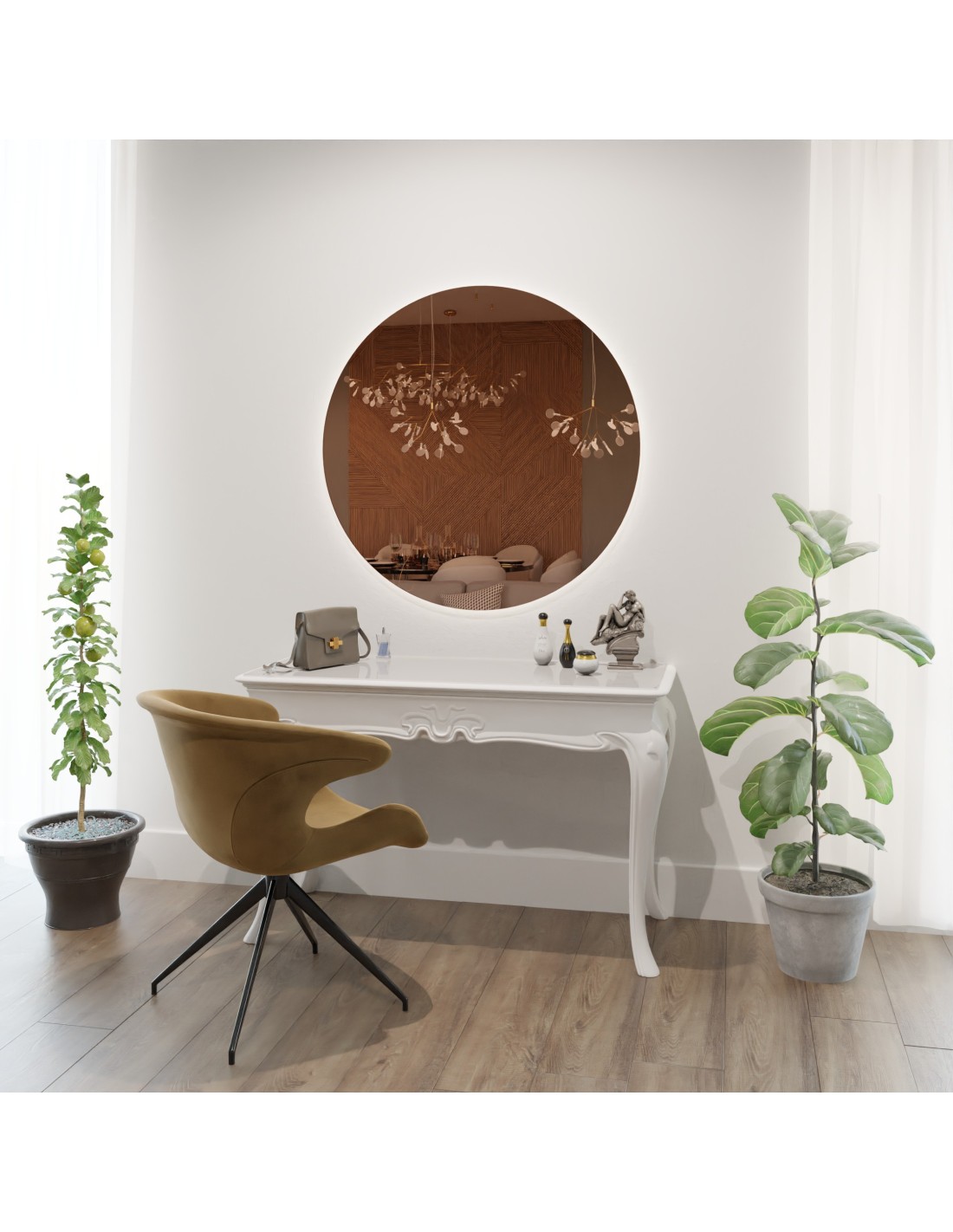 Für ein professionelles Make-up empfehlen wir die Verwendung von Spiegeln mit Glühbirnen. Bei rahmenlosen Spiegeln ist die Verkleidung weiß. Bei Spiegeln mit Rahmen entspricht die Verkleidung der Farbe des Rahmens. Bei der Auswahl der Beleuchtung für das tägliche Make-up ist es nicht möglich, eine andere Verkleidung zu wählen. Bei Spiegeln, die für das tägliche Make-up bestimmt sind, ist die Beleuchtung in eine spezielle Verkleidung integriert, was bedeutet, dass kein Lichteffekt um die Spiegelfläche entsteht.