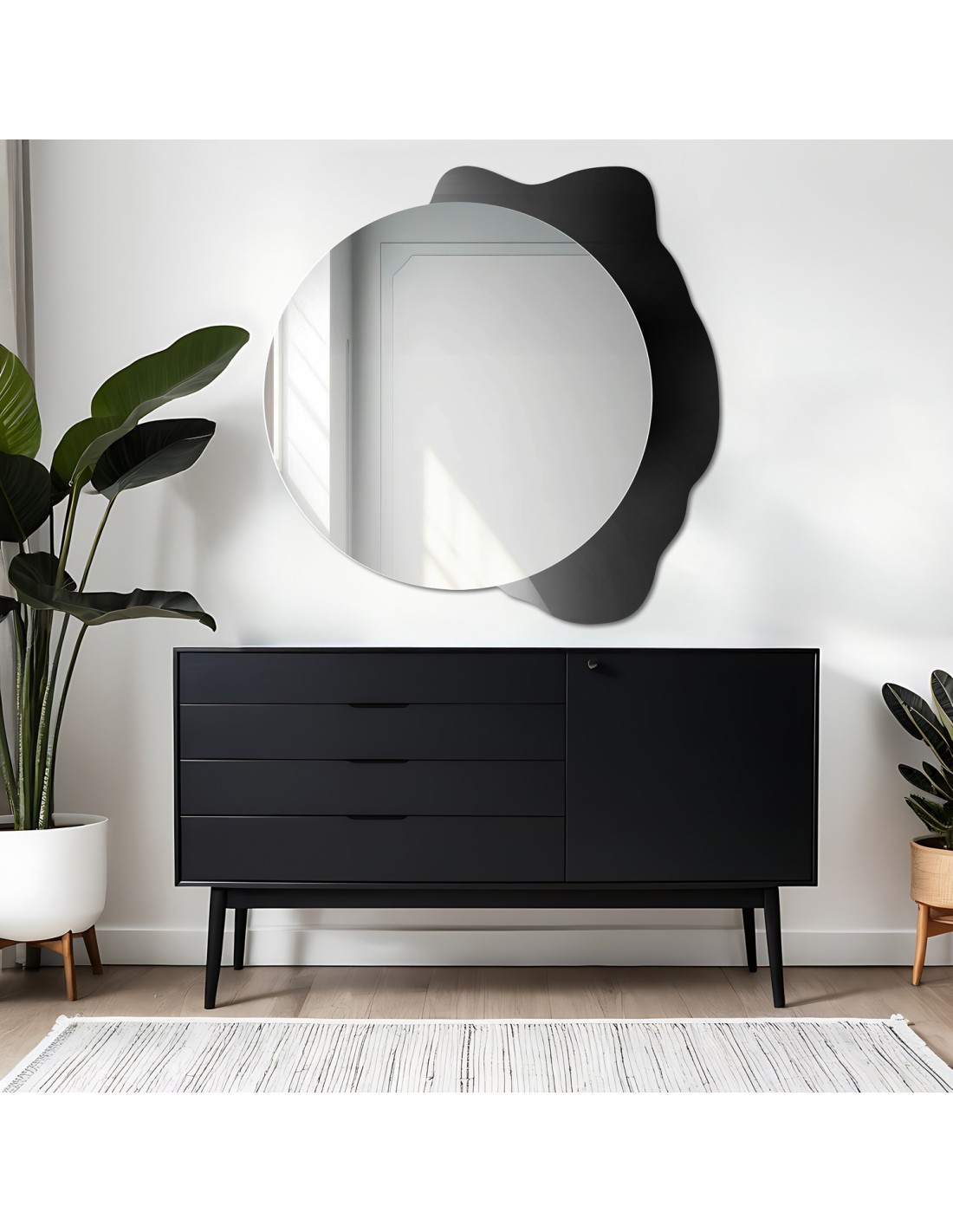 Dekorativer runder Spiegel auf schwarzem Fleck - PLAMKO