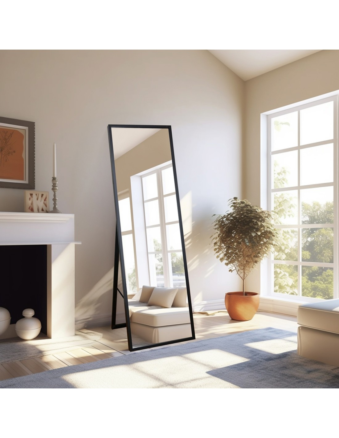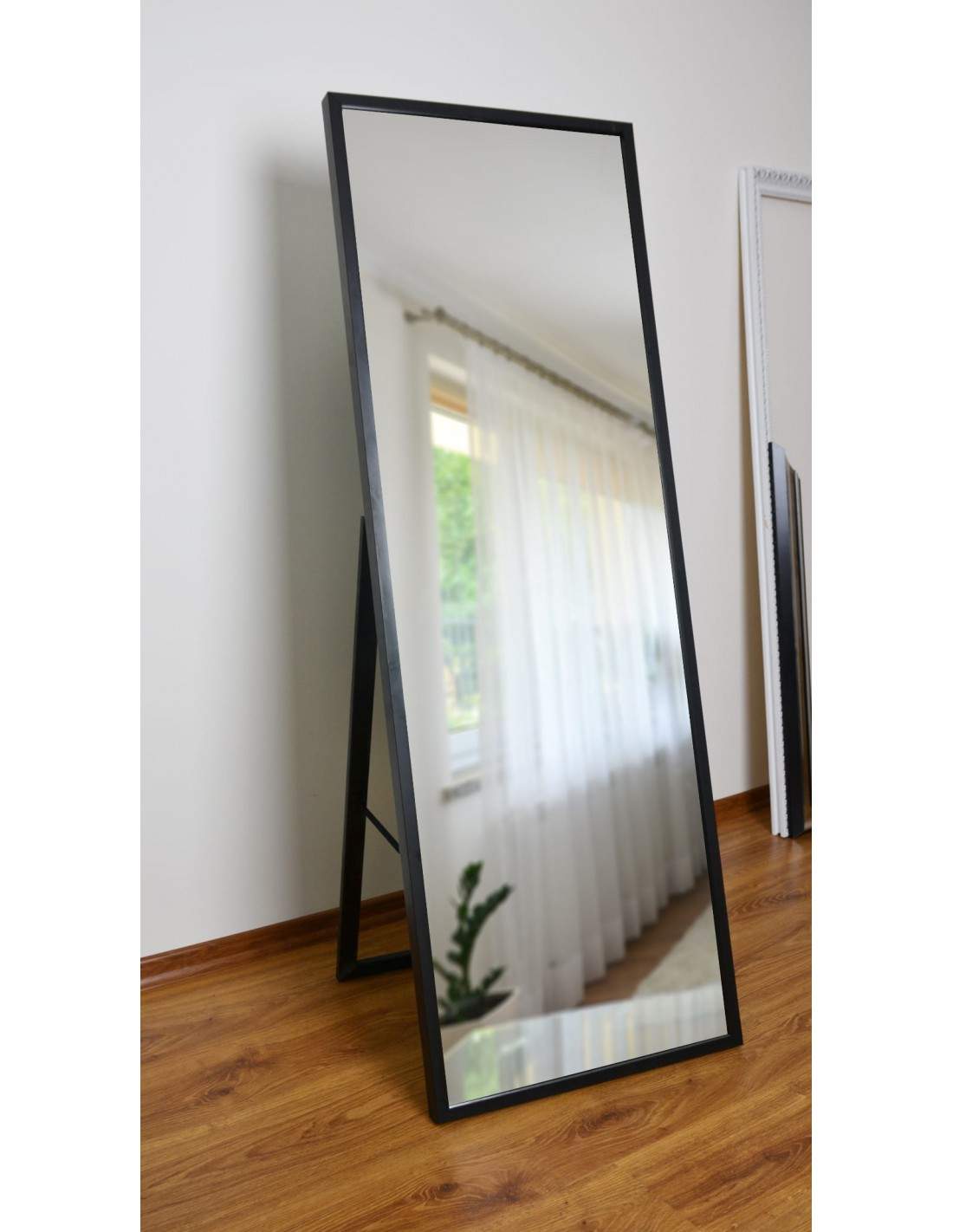 Standspiegel mit schmalem Holzrahmen für...