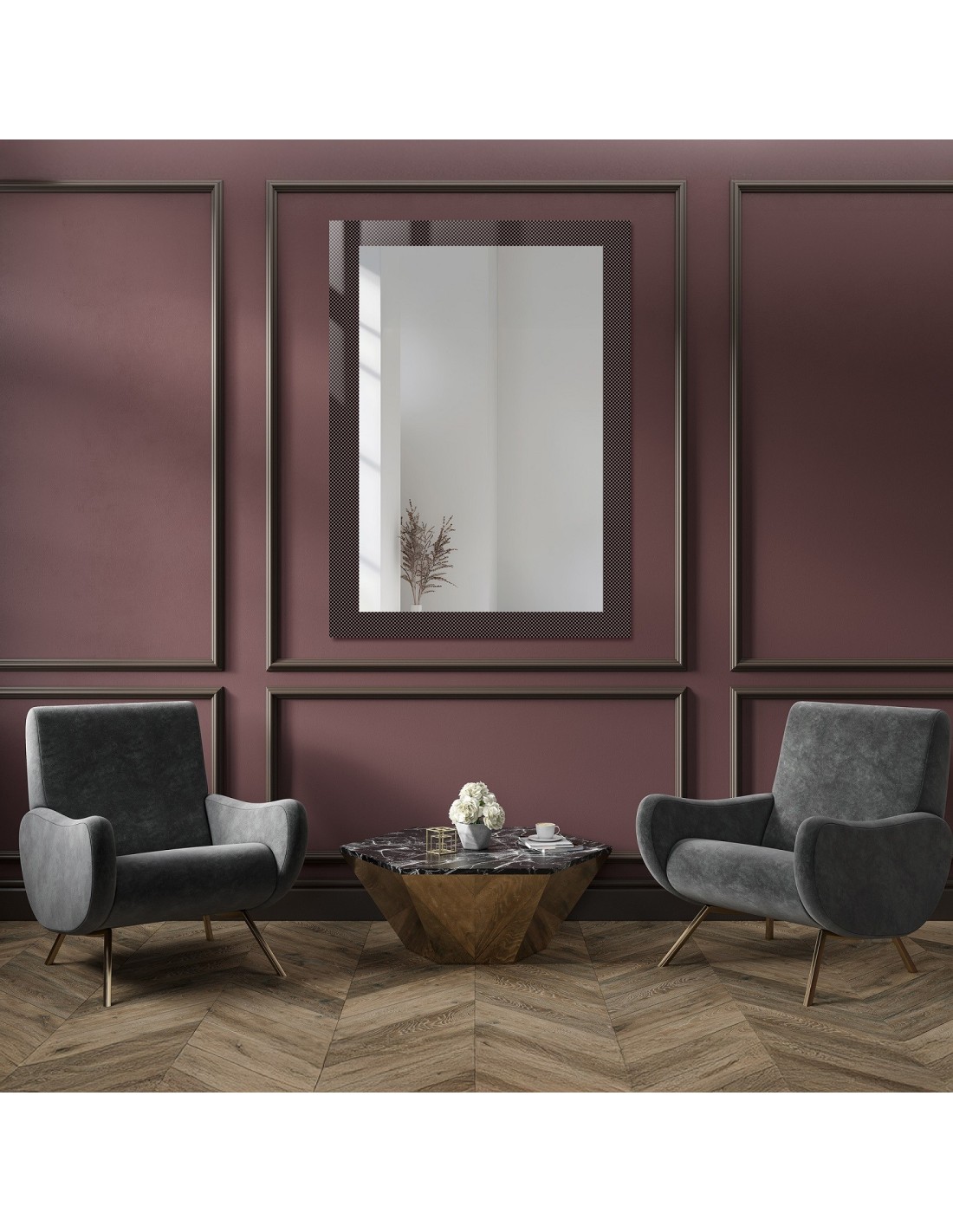 Diese Spiegelglas hat einen tiefen, kühlen Farbton, der dem Raum einen modernen, urbanen Look verleiht. Graphitfarbener Ansatz ist besonders für diejenigen geeignet, die ein modernes, minimalistisches Interieur einrichten möchten.