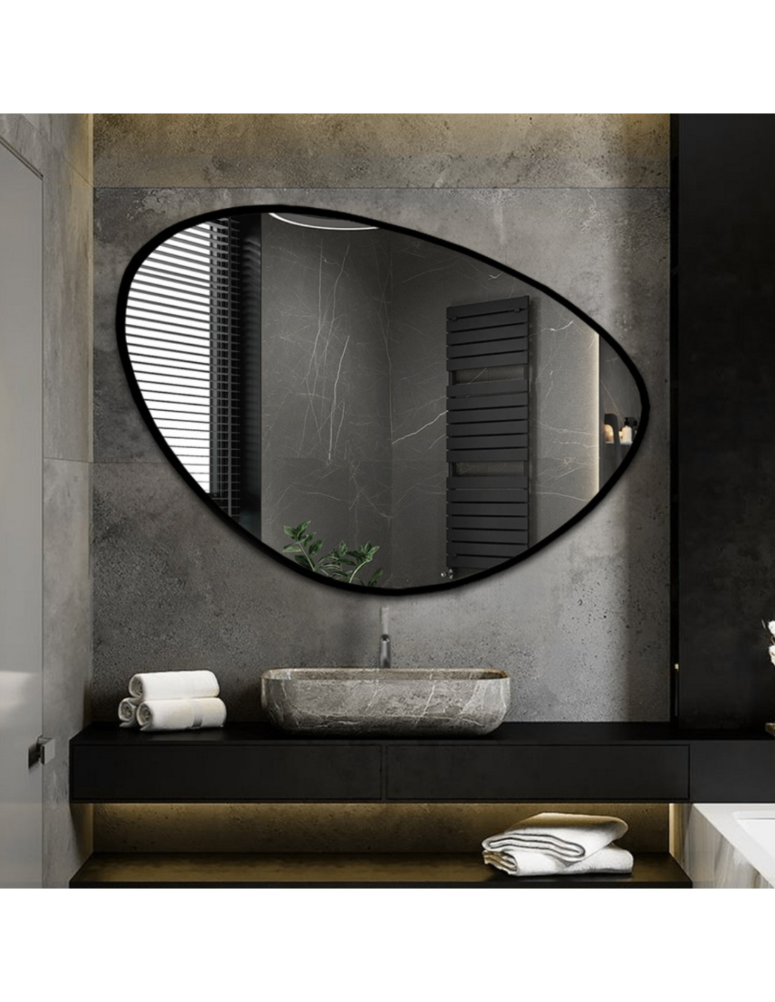 Spiegel in unregelmäßiger Form mit Rahmen - OBSYDIAN IM RAHMEN