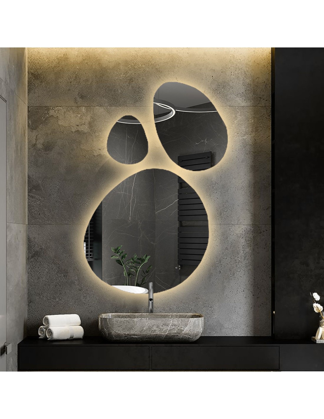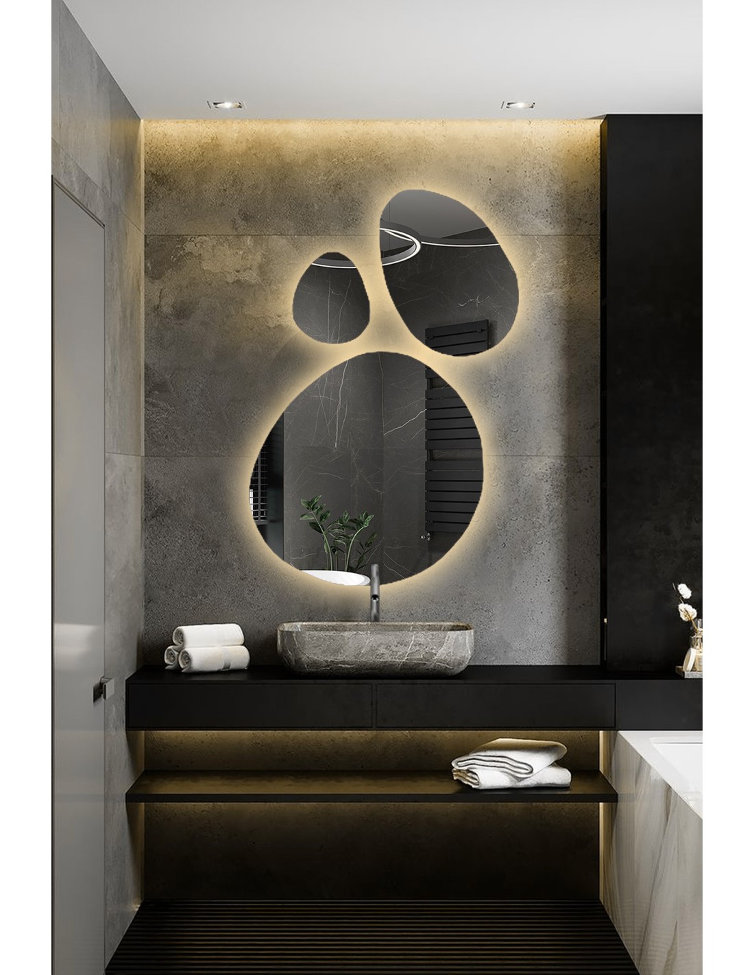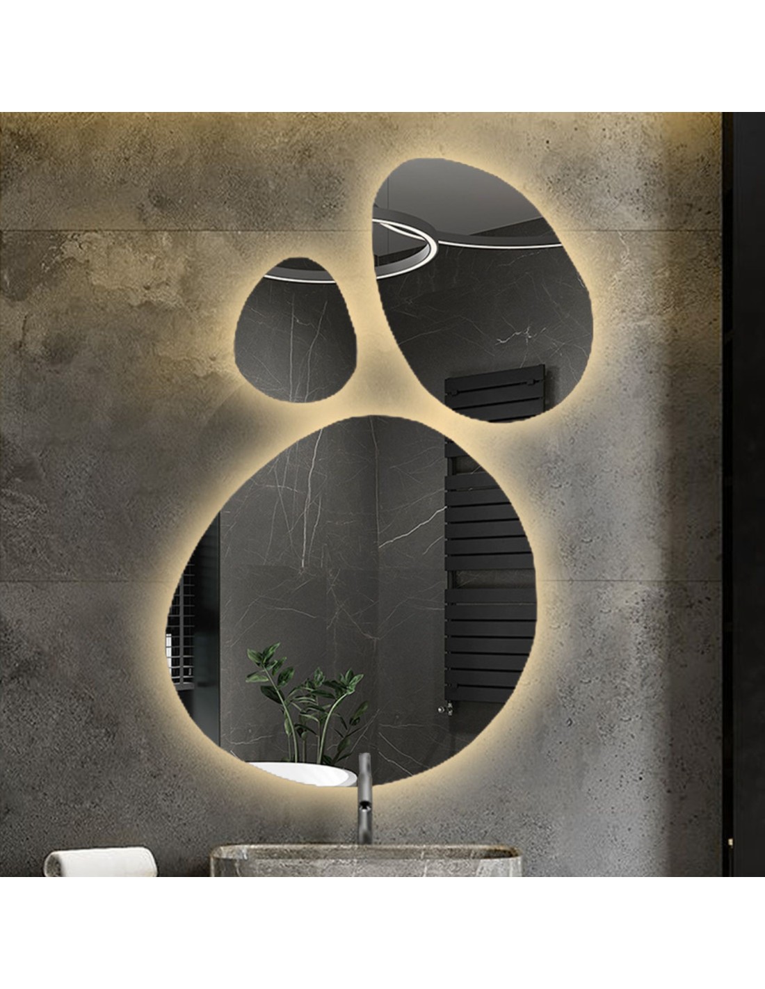 Set aus drei Spiegeln in organischer Form mit Beleuchtung - OPALIT LED